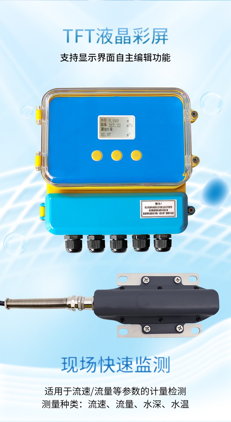 顯示界面:水位、瞬時流量、累計流量