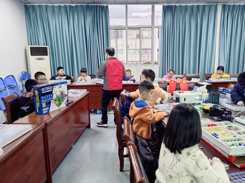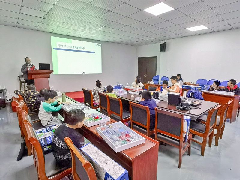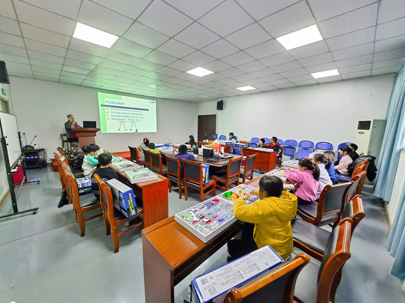 大禹電子公益課開講啦,課程二:電子百拼(電子百拼積木),大禹電子技術鐘工聲情并茂的給孩子們講解“電子百拼”的知識,孩子在玩中學,學中玩,動手動腦相結合,創新思維能力和動手實踐能力得到提高。