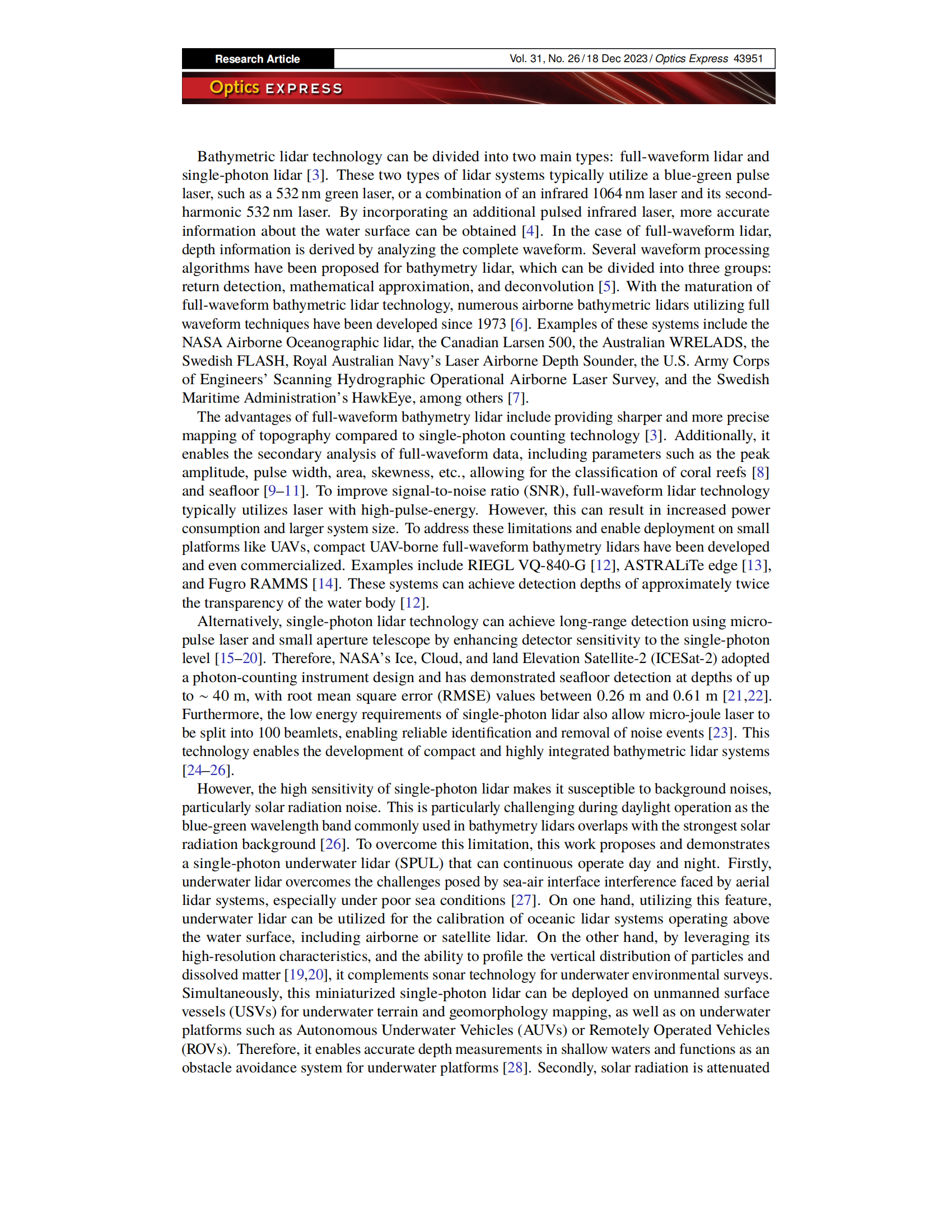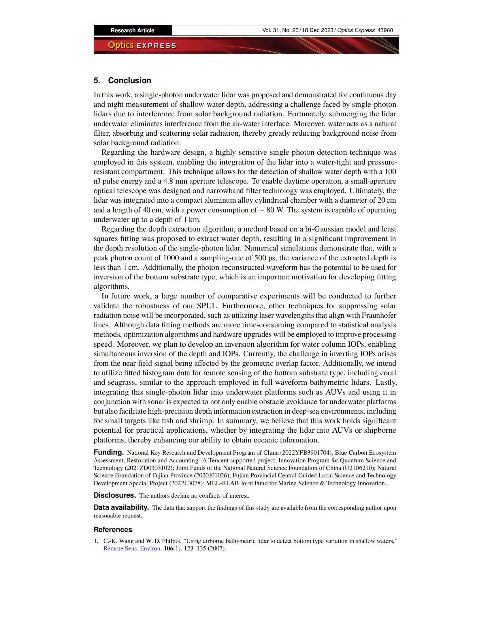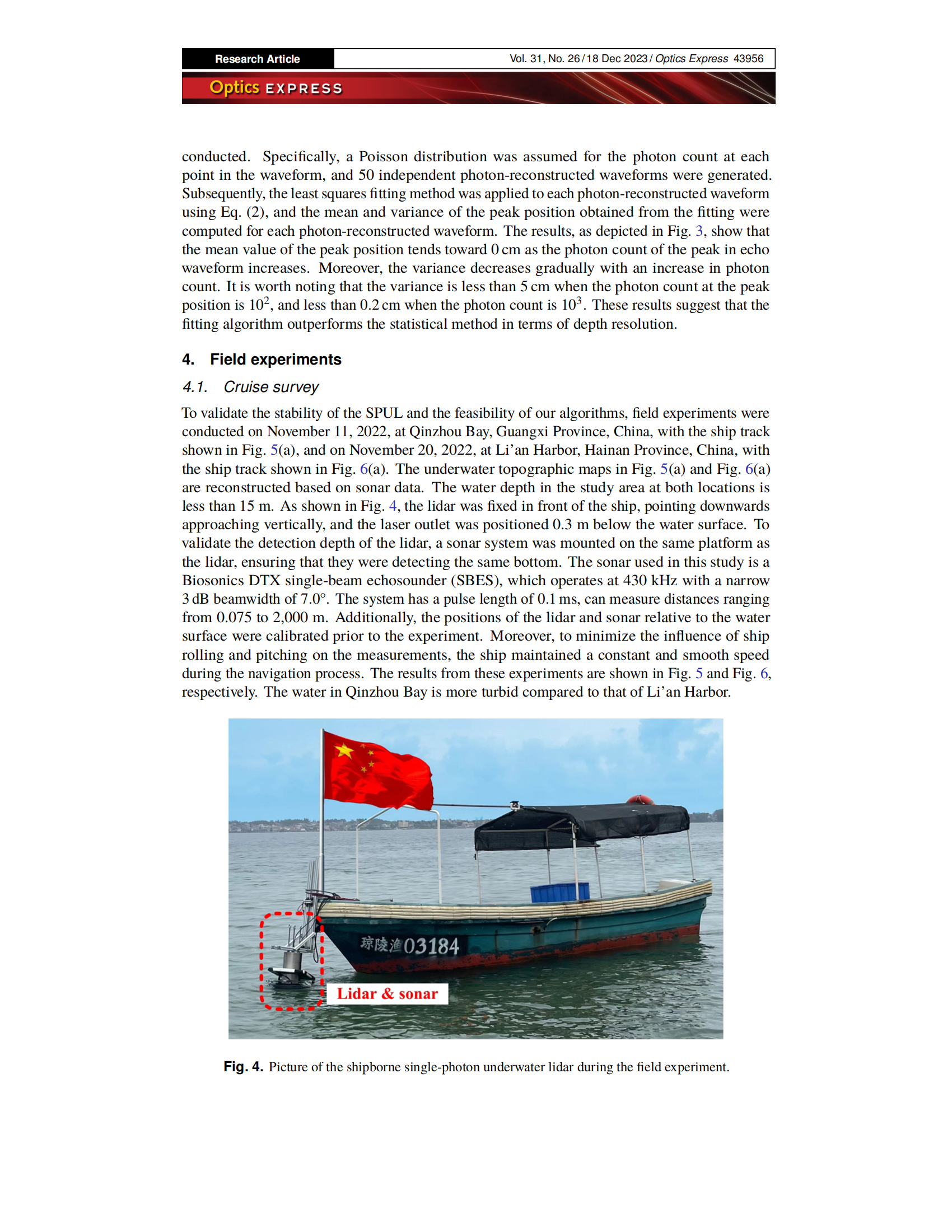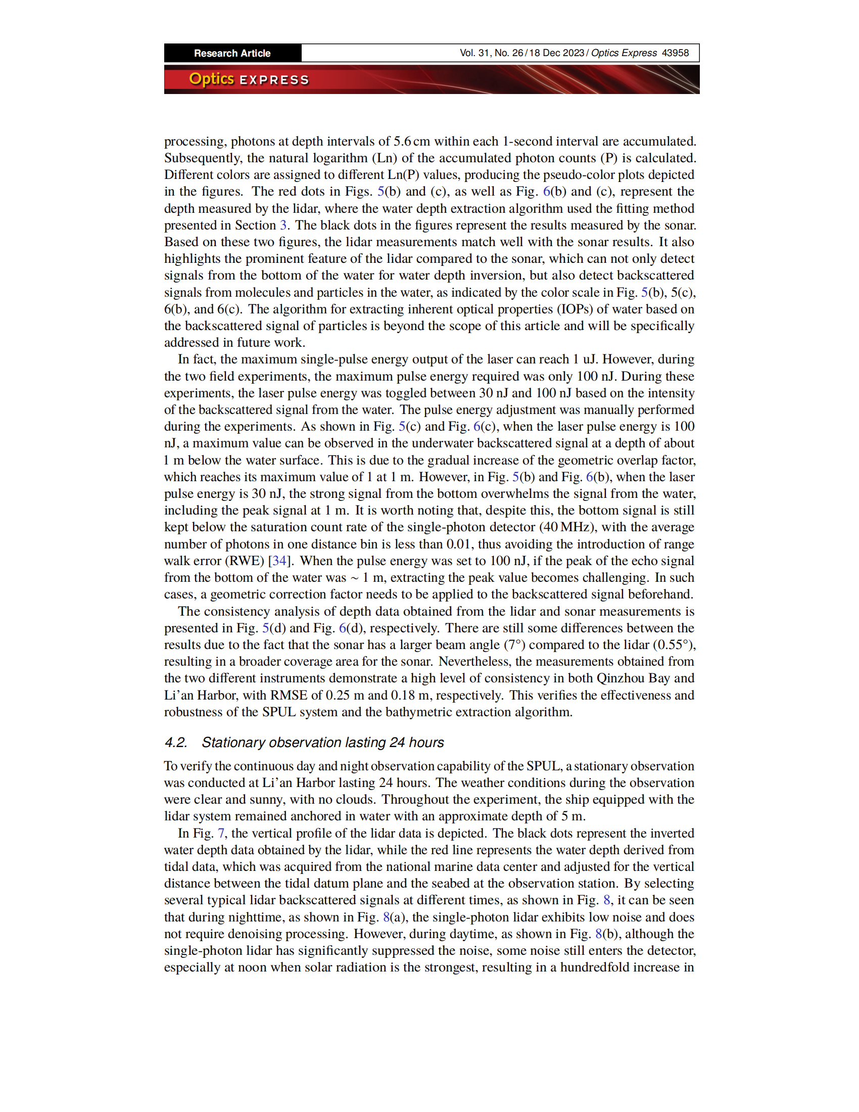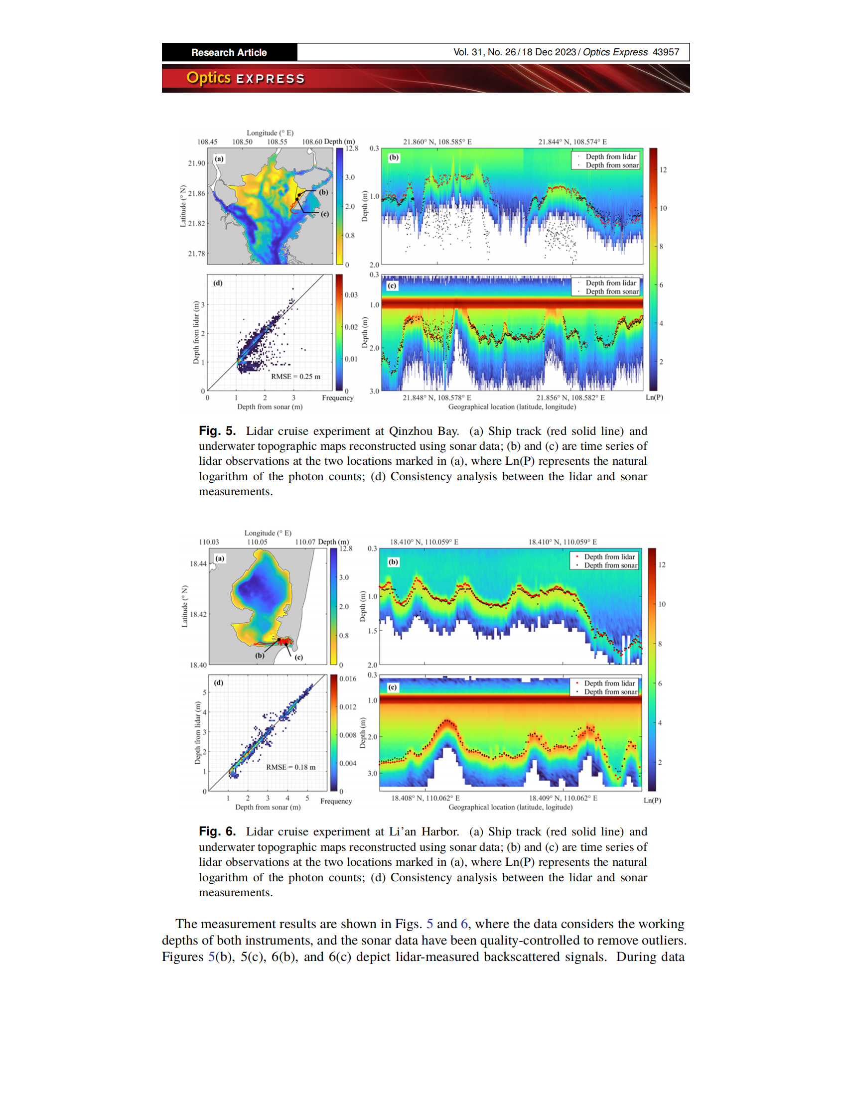 廈門大學上官明佳教授發表于美國國家光學雜志的文章,里面用了福州大禹電子的聲吶測試數據和他的水下測距激光雷達進行互相驗證。